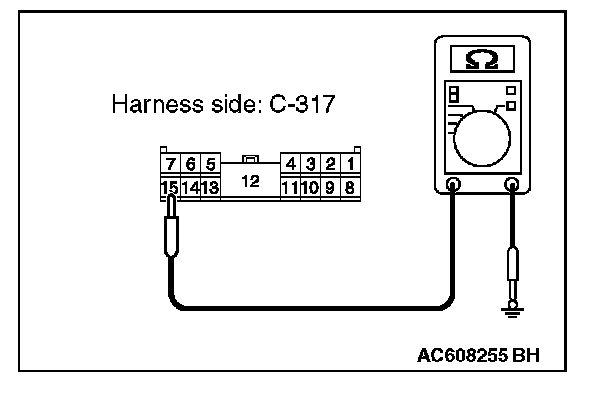 3. Measure the resistance value between ETACS-ECU connector C-317 terminal 15 and ground.