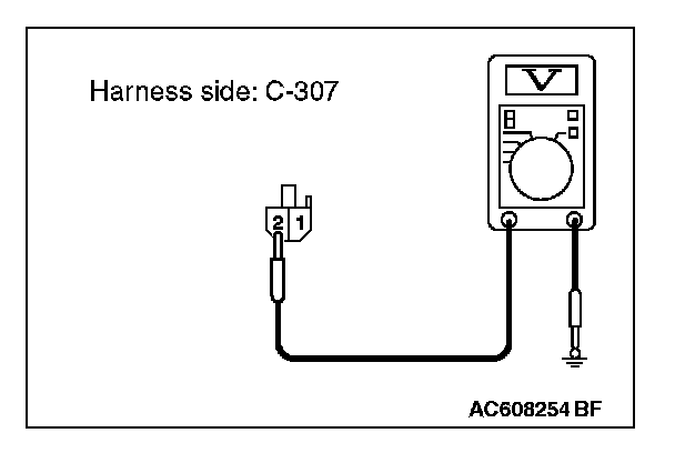 2. Measure the voltage between ETACS-ECU connector C-307 terminal 2 and ground.