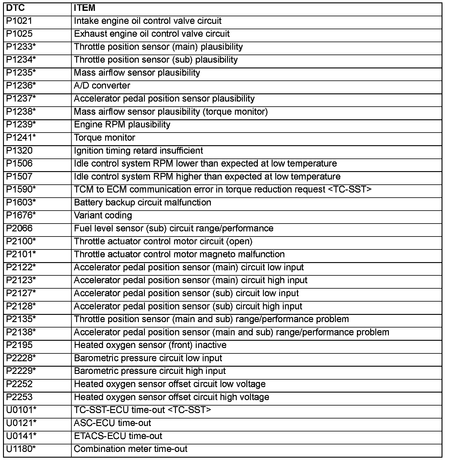 P1021-P2253 / U0101-U1180: