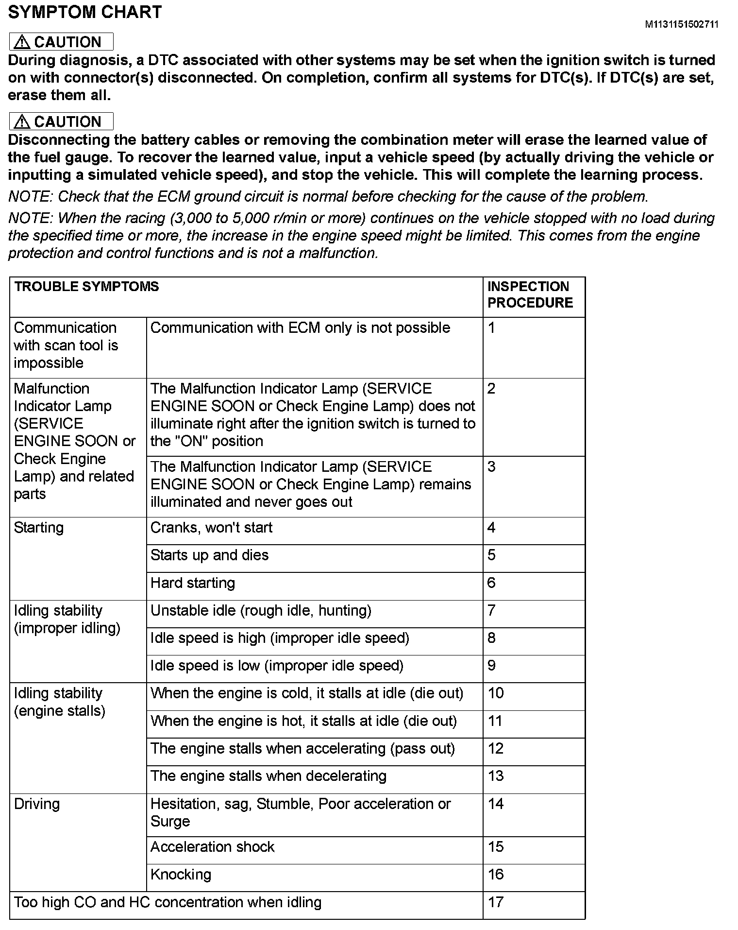 Symptom Chart (Part 1):