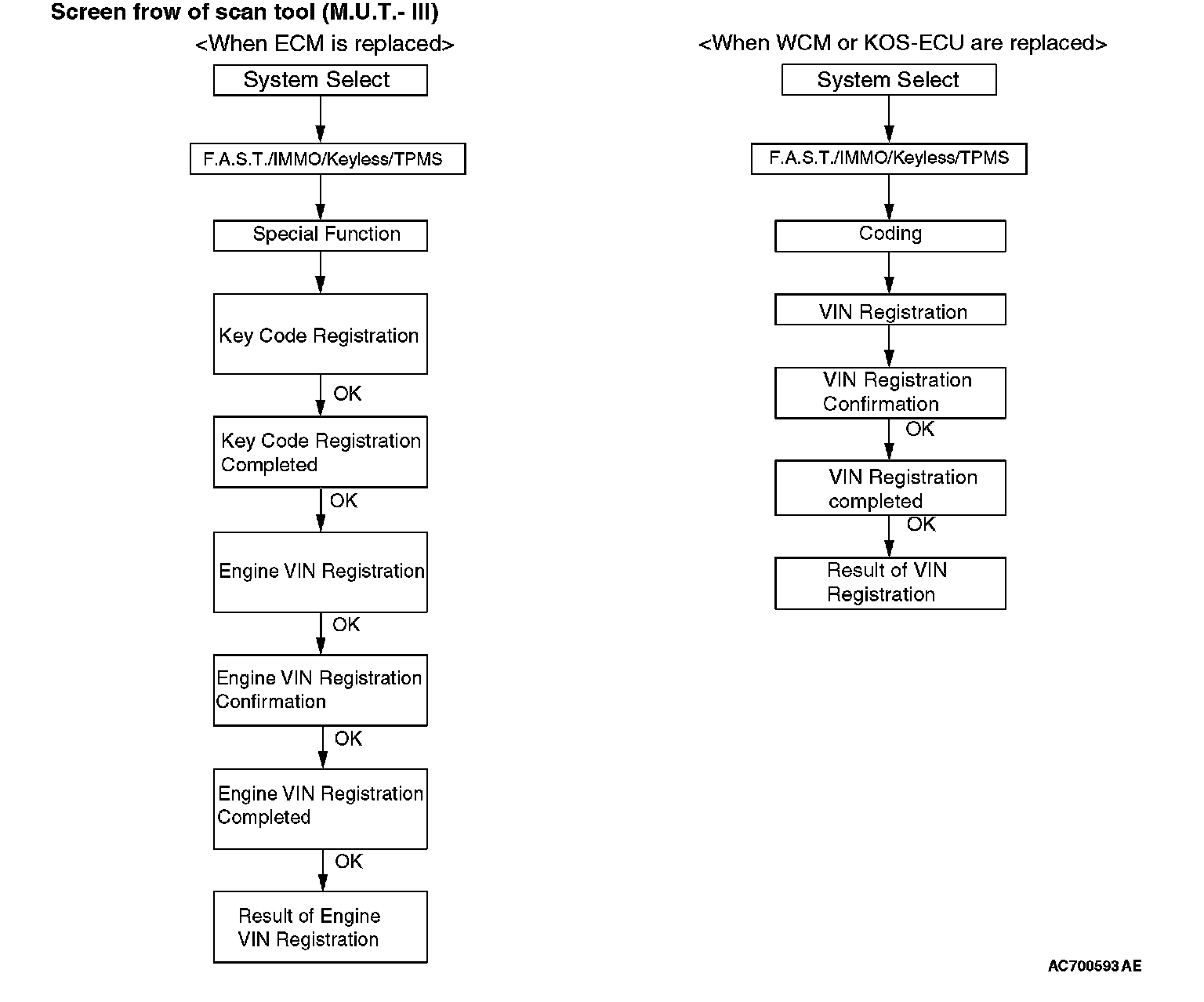 11. Push the OK button after "ENG key code & VIN Reg." is displayed.