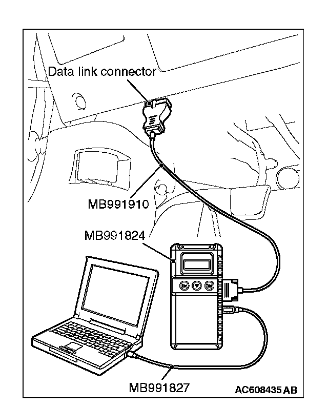 5. Connect special tool MB991910 to the data link connector of the vehicle.