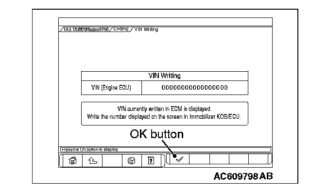 11. Push the OK button after the VIN written in the engine control module is displayed.