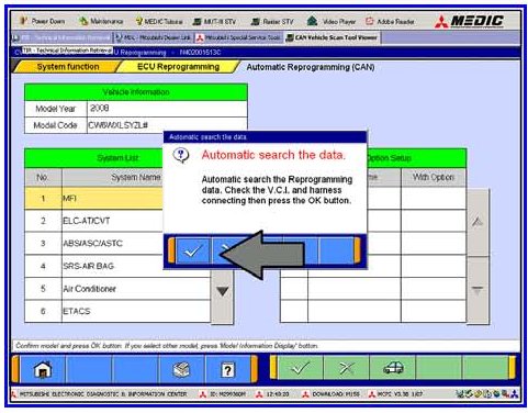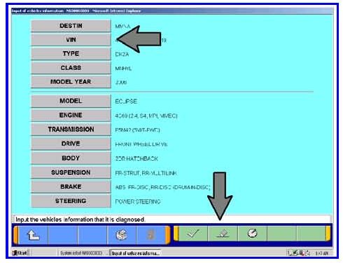 g. Click on the icon in the lower RH corner of the screen to have the MUT-III automatically read the VIN. If a message appears saying that the VIN cannot be input automatically, manually type the 17 digit VIN into the VIN field.