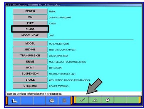 h. If it was not completed automatically, input the vehicle class. Click on the CLASS button, select the appropriate class from the menu and then click the check mark at the bottom of the page. Vehicle class can be found on the Vehicle Information Code Plate riveted to the base of the RH b-pillar (see photo above). The class is part of the model code.