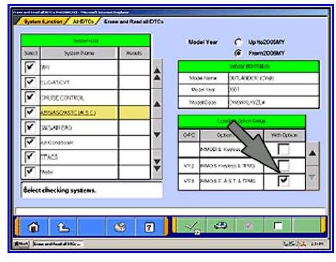 3. Using the MUT-III, check and erase ALL DTCs from all systems as follows.