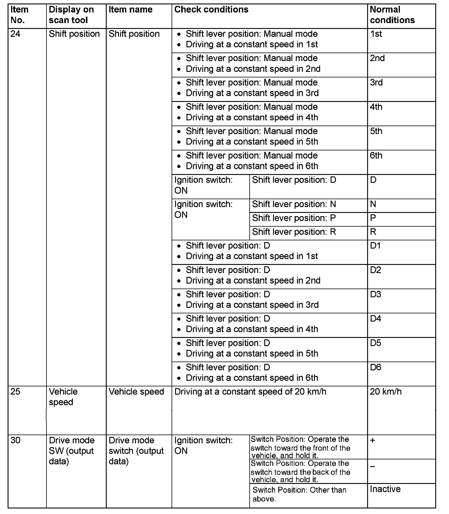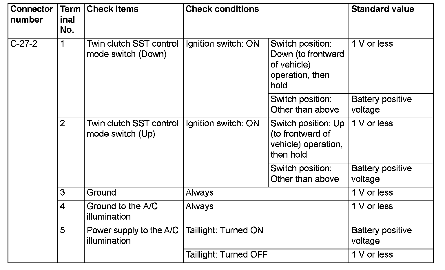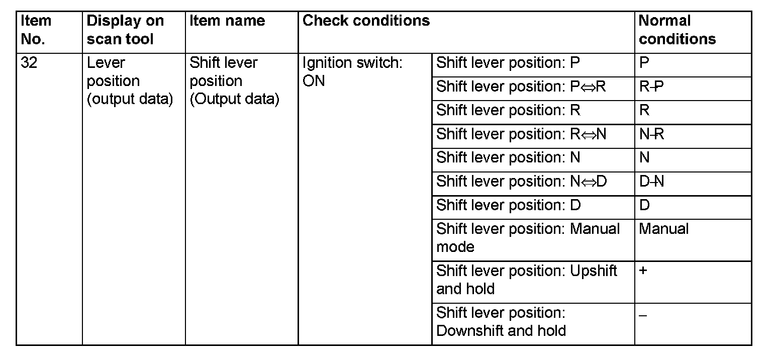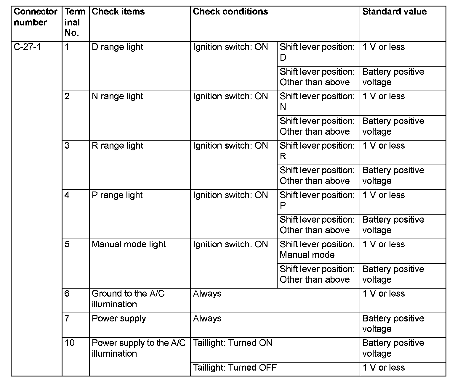 SHIFT LEVER-ECU TERMINAL VOLTAGE REFERENCE CHART