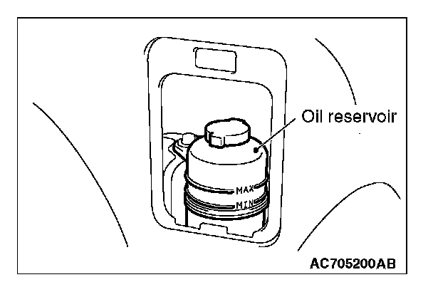 3. Check that the oil reservoir fluid level is in between MAX and MIN.