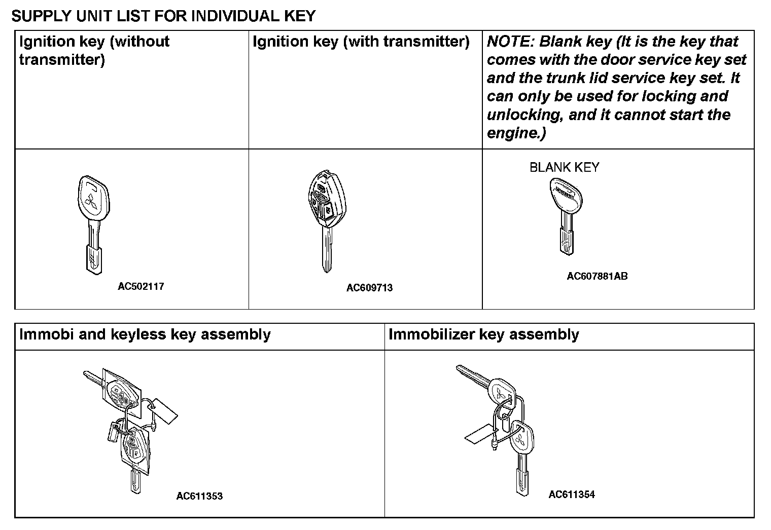The ID codes necessary for the engine immobilizer system, the keyless entry system and the TPMS can be registered using the scan tool MB991958 (M.U.T.-III sub assembly). KOS and keyless operation key are indicated as F.A.S.T and F.A.S.T.-key respectively in the scan tool