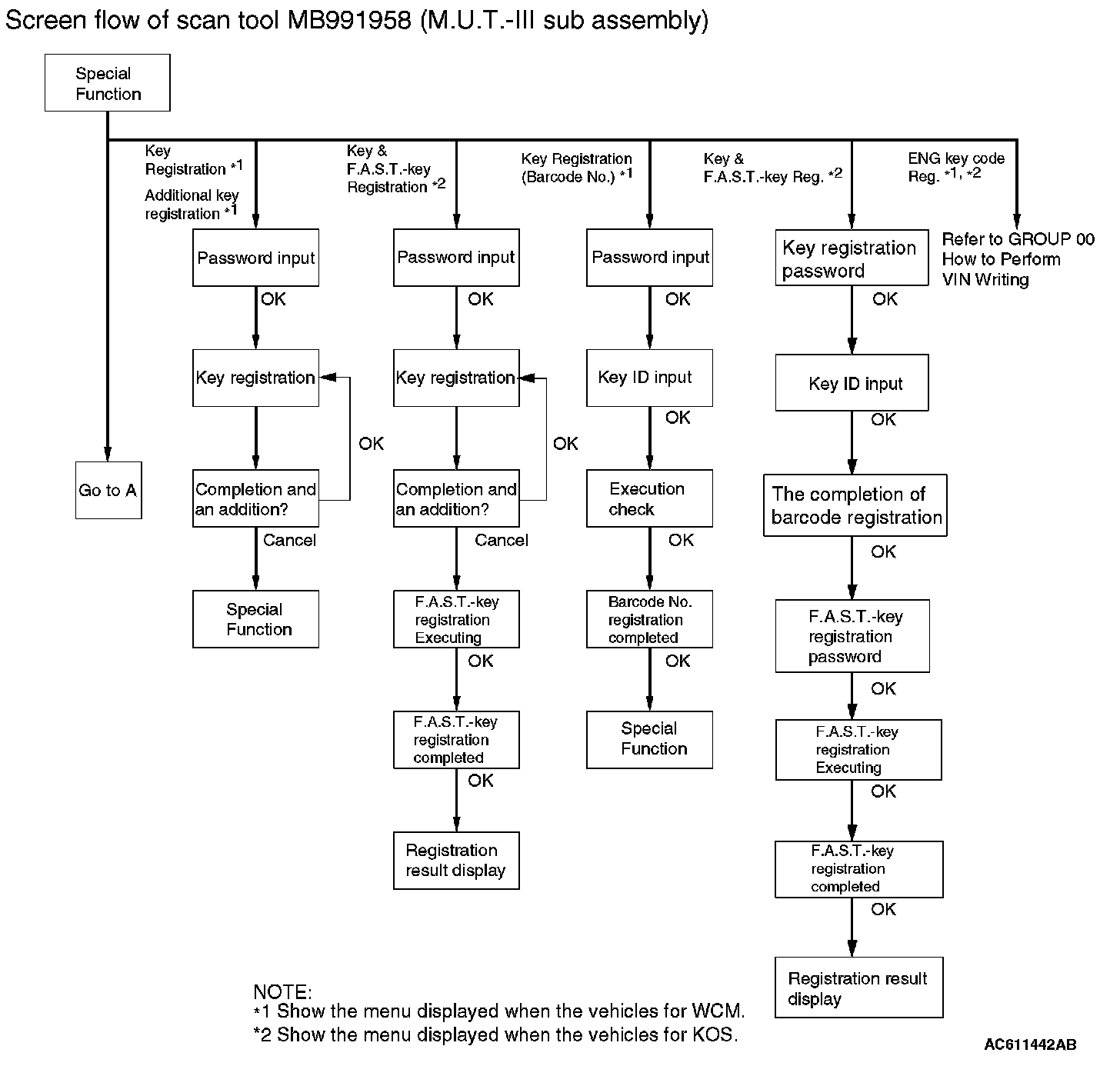 ID CODES REGISTRATION PROCEDUREREGISTRATION USING SCAN TOOL MB991958 (M.U.T.-III SUB ASSEMBLY)