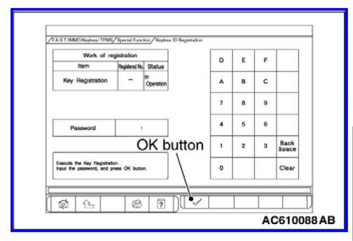 NOTE:When the key cannot be registered using scan tool MB991958, refer to Inspection Procedure: "The ignition key cannot be registered using scan tool.