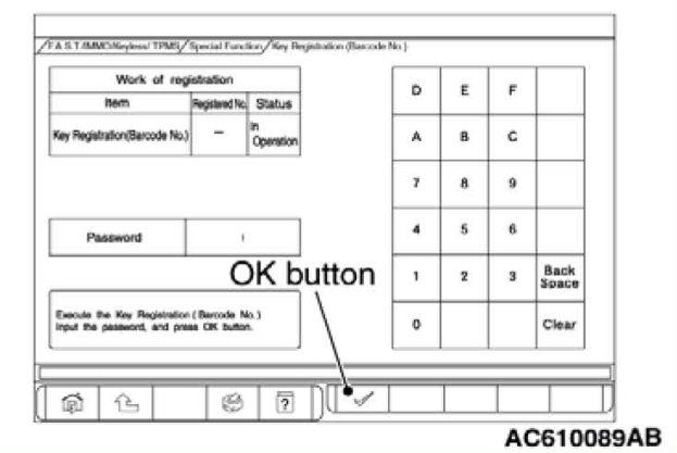 1. When "Key Registration (Barcode No.)" screen is displayed, enter the password for the key registration and press the OK button.