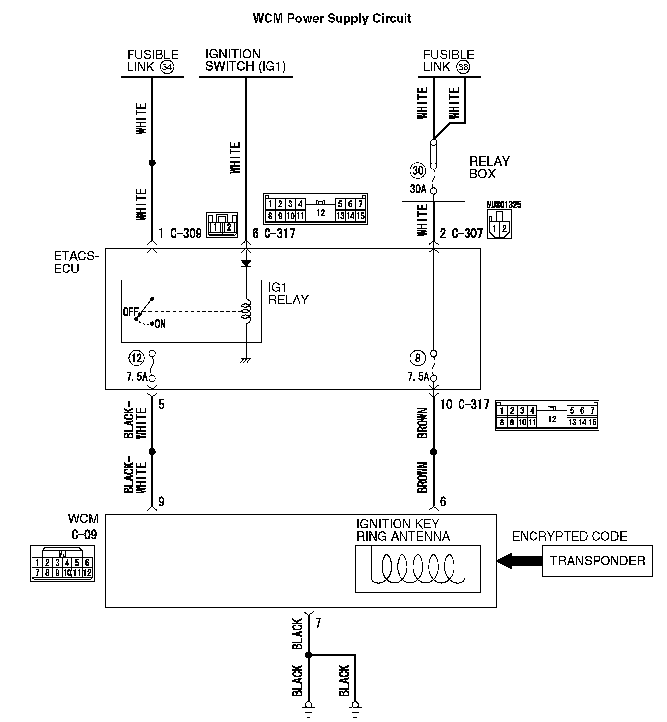 NOTE: Before checking the wiring harnesses, check the ETACS-ECU connectors C-307, C-309, and C-317, and repair if necessary.