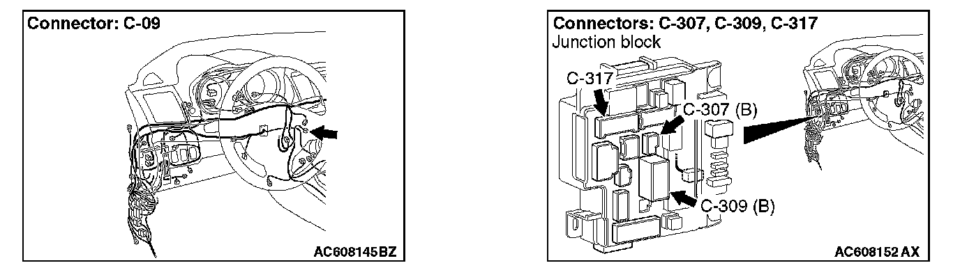 STEP 1. Check WCM connector C-09 for loose, corroded or damaged terminals, or terminals pushed back in the connector.