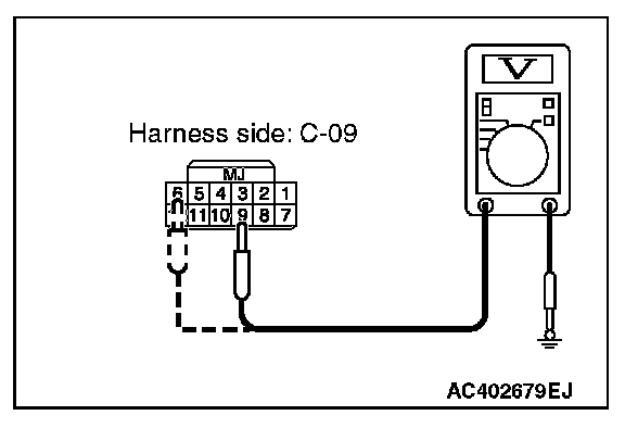 3. Measure the voltage between terminal No. 6 or 9 and ground.