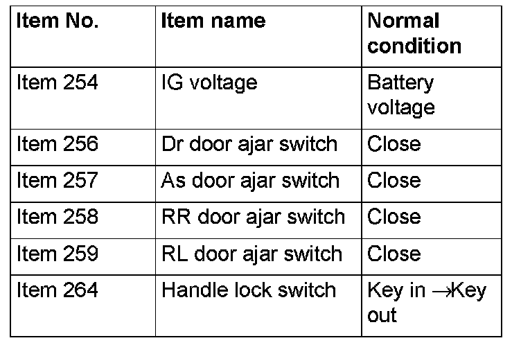 Check the signals related to the keyless entry system operation.
