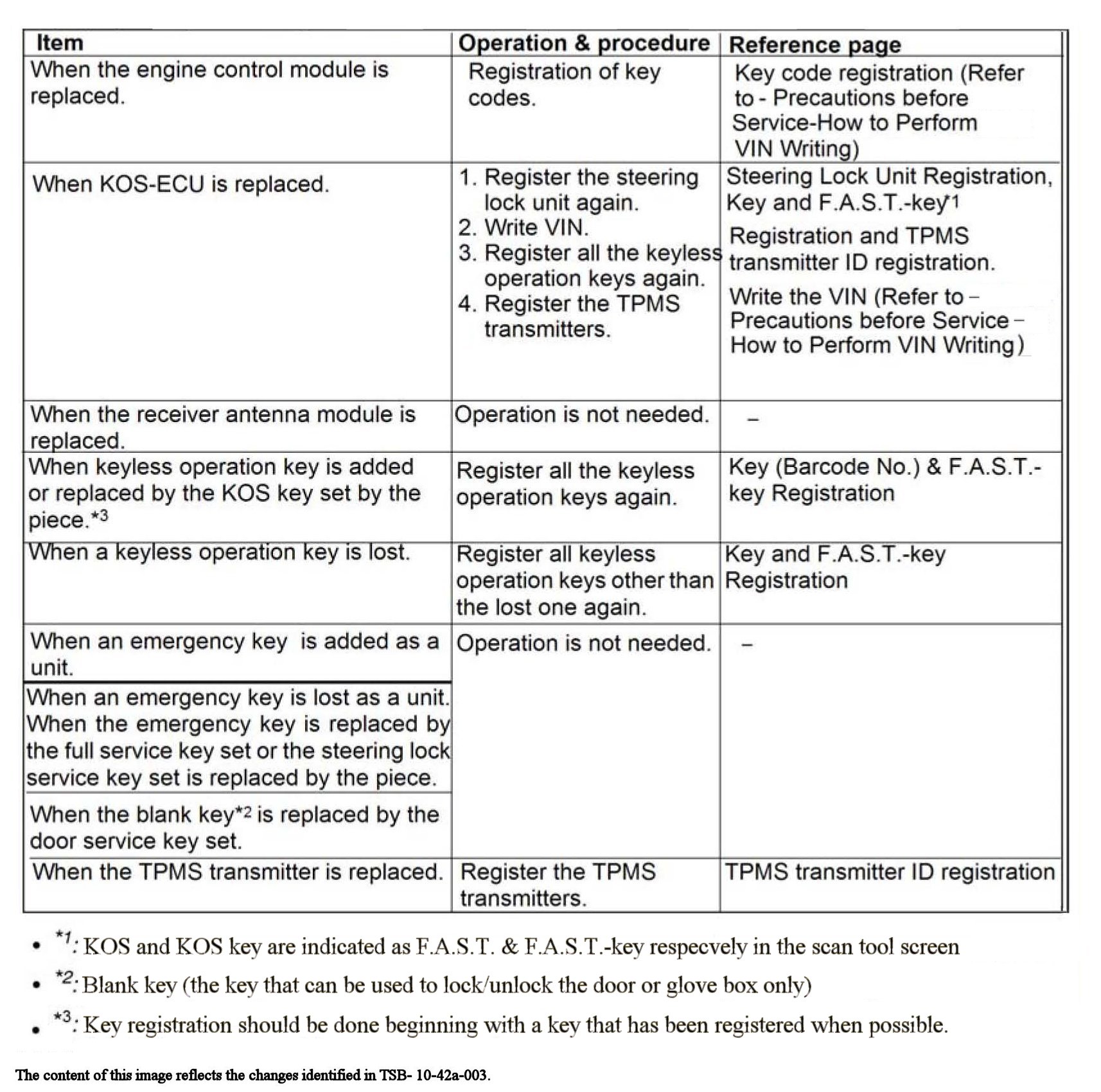 The contents of this article and images reflects the changes identified in TSBs - 10-42a-002, and 10-42a-003.ID CODE REGISTRATION NECESSITY JUDGMENT TABLE