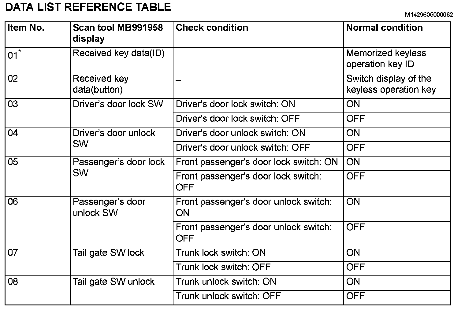 Data List Reference Table (Part 1):