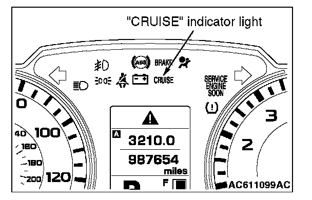 1. Check that the "CRUISE" indicator light within the combination meter illuminates when the "ON/OFF" (MAIN) switch is switched "ON".
