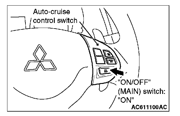 2. Press the "ON/OFF" (MAIN) switch again, and check that the "CRUISE" indicator light within the combination meter goes out.