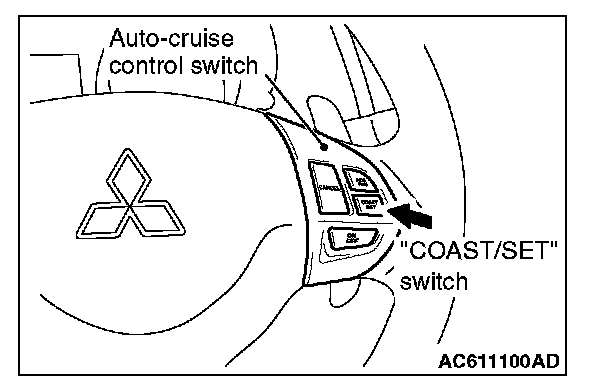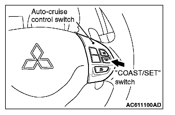 4. Check to be sure that deceleration continues while the "COAST/SET" switch is pushed, and that the speed at the time it was released becomes the constant driving speed.