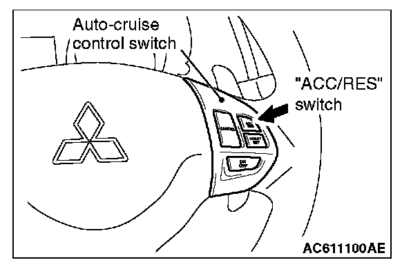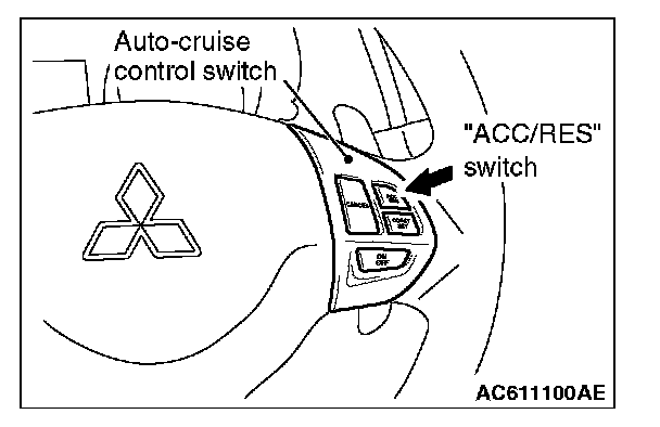 4. Check to be sure that acceleration continues while the "ACC/RES" switch is pushed, and that the speed at the time it was released becomes the constant driving speed.