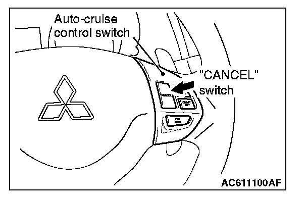 NOTE: If the vehicle speed decreases to approximately 15 km/h (9 mph) below the set speed because of climbing a hill for example, it is normal for the auto-cruise control to be cancelled. When the vehicle speed becomes approximately 40 km/h (25 mph) or less, driving at constant speed will be cancelled even if the vehicle speed does not decrease 15 km/h (9 mph) or more.