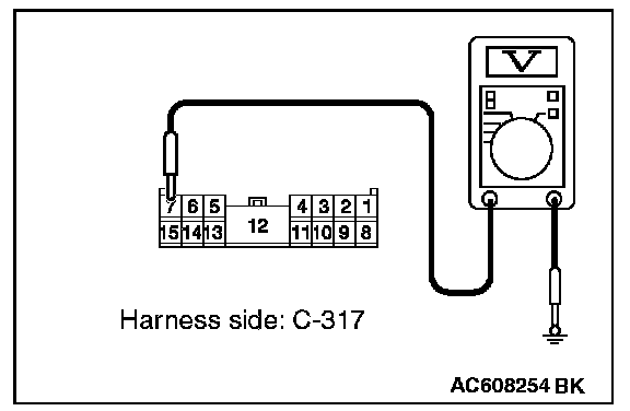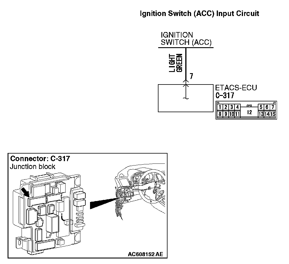 1. Disconnect ETACS-ECU connector C-317 and measure the voltage available at the junction block side of the connector.