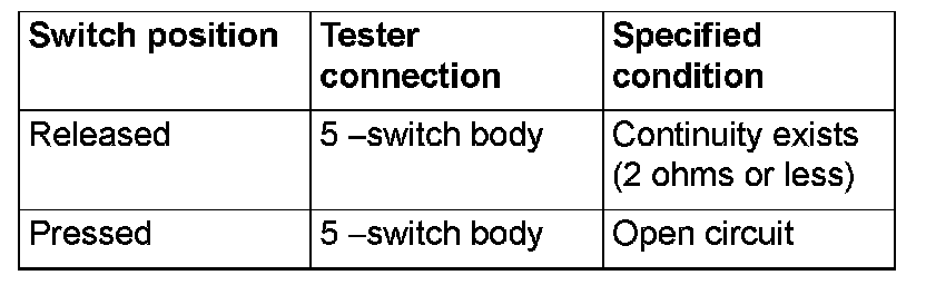 Remove the center panel unit. Then check continuity between the switch terminal and switch body.