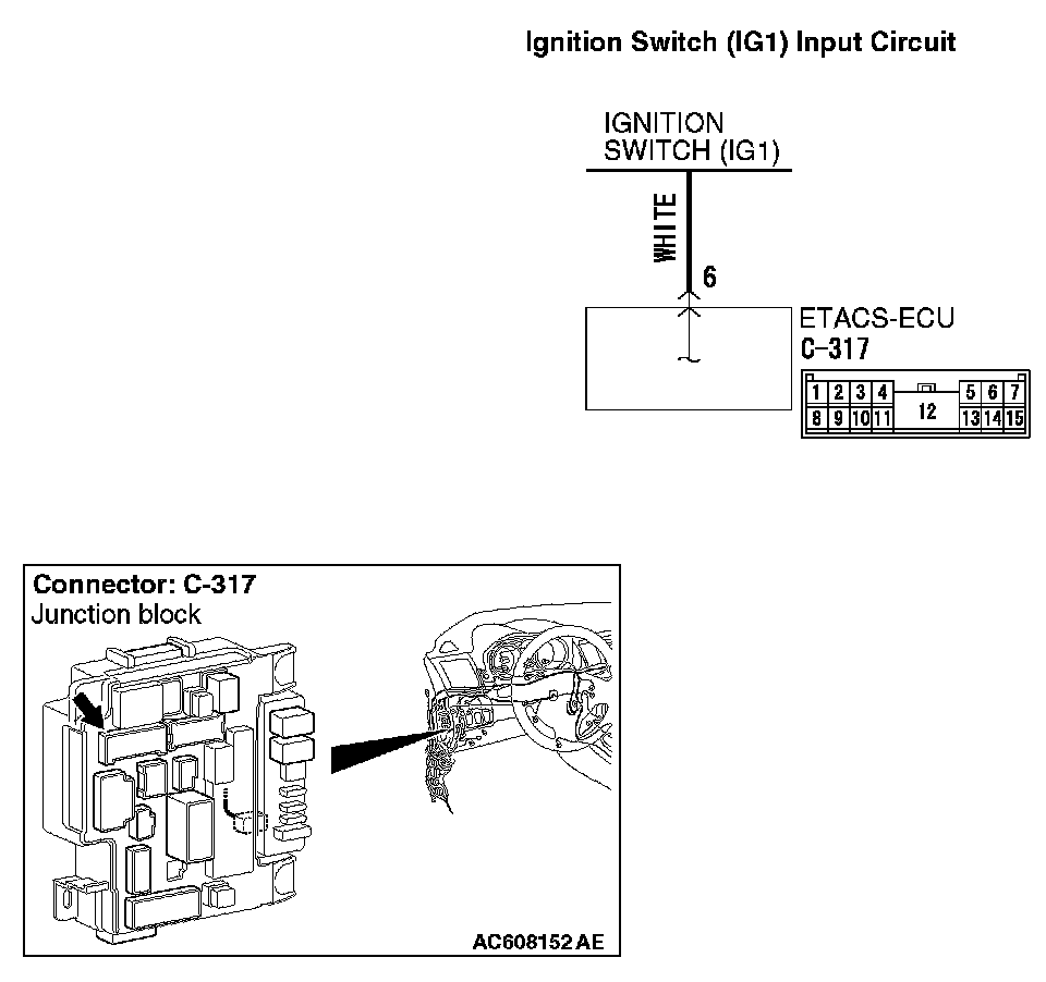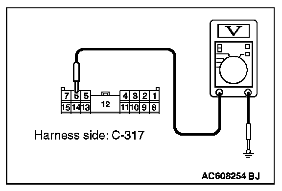 1. Disconnect ETACS-ECU connector C-317 and measure the voltage available at the junction block side of the connector.