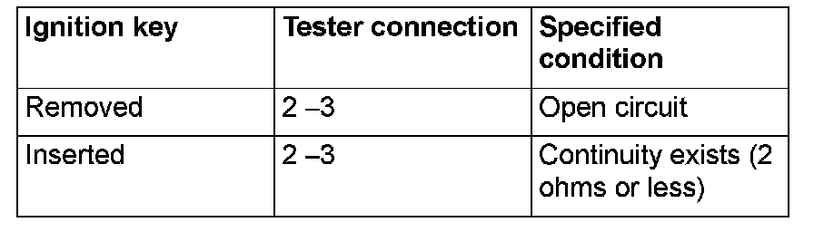 Disconnect key reminder switch connector C-213. Then check continuity between terminals.