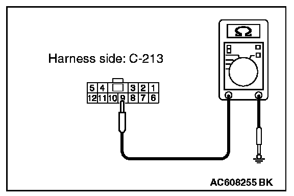 STEP 3. Check the ground circuit to the key reminder switch. Measure the resistance at key reminder switch connector C-213.