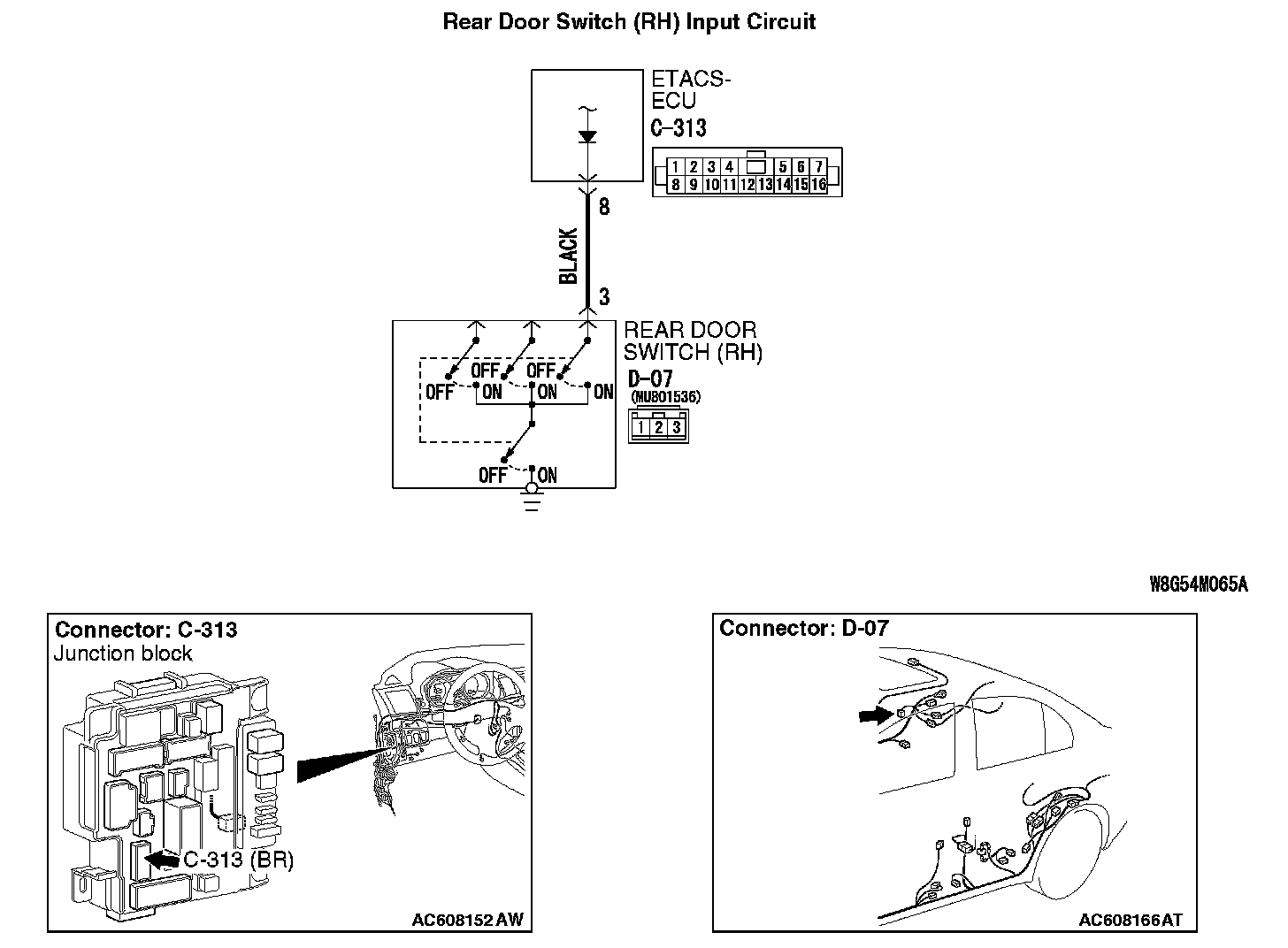 Inspection Procedure 8: ETACS-ECU does not receive any signal from the rear door switch (RH).