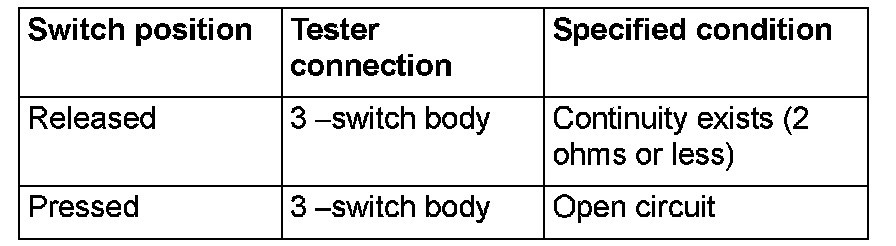 Remove the rear door switch (RH). Then check the continuity between the switch terminals and the switch body.