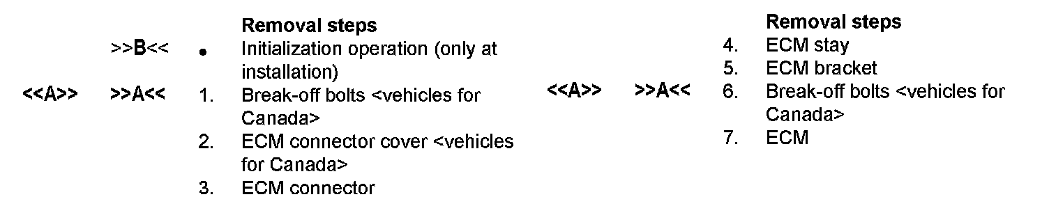- For replacement of the ECM, use an ECM for which the vehicle identification number entry and coding are completed. If diagnosis code No. P0630 vehicle identification number-related or No. P1676 variant coding-related is set in the ECM, replace it with an ECM to which the same vehicle identification number has been entered and the same coding has been made as for the relevant vehicle.