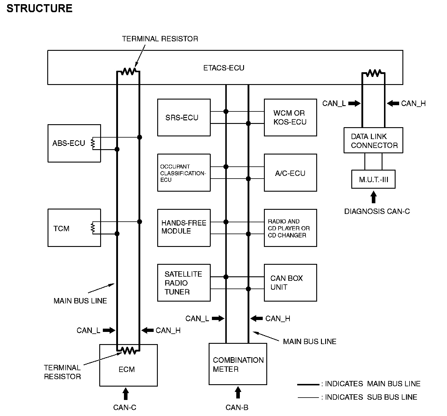 - Non-dominant ECU: ECU and sensor on CAN-C network, excluding ETACS-ECU and engine ECU