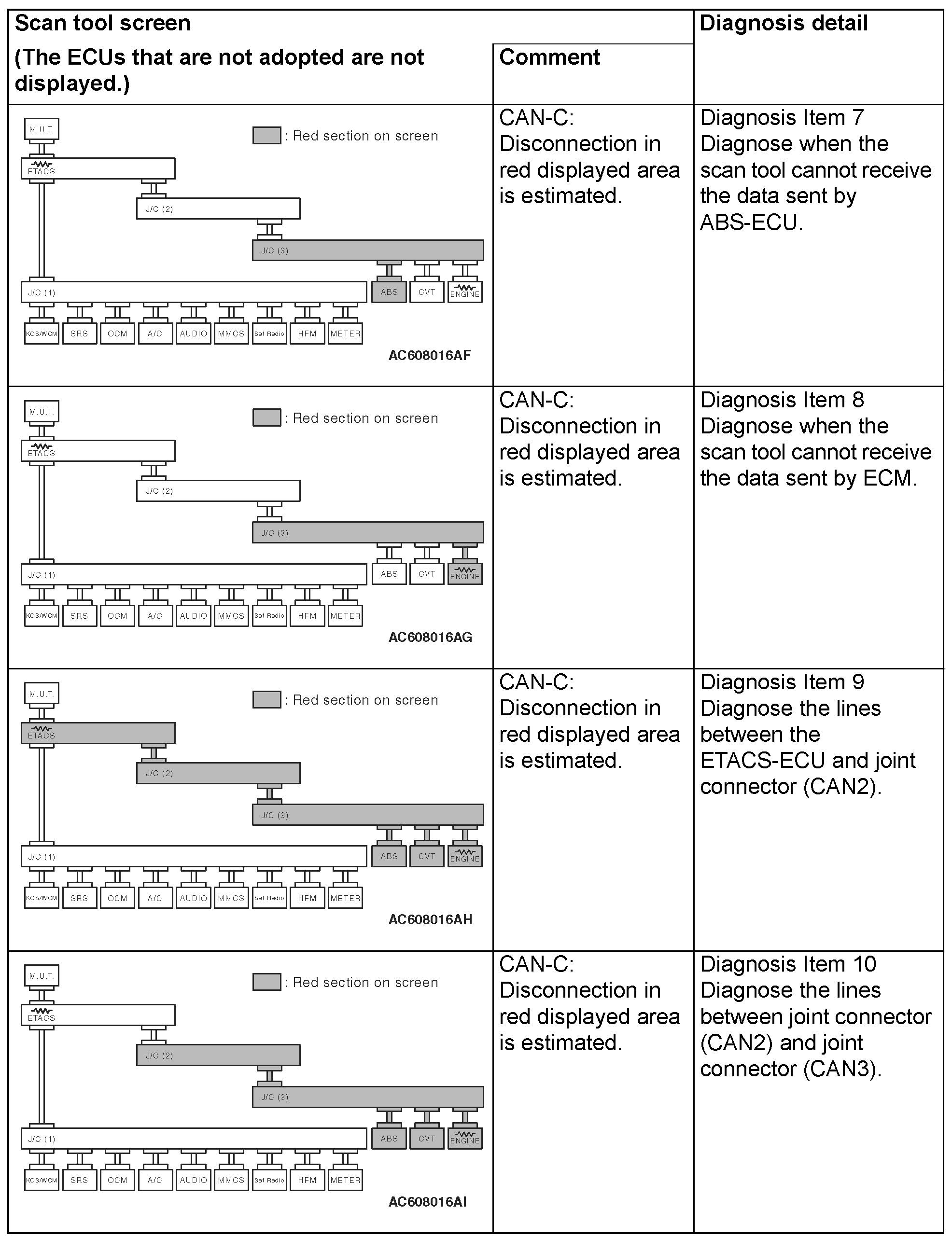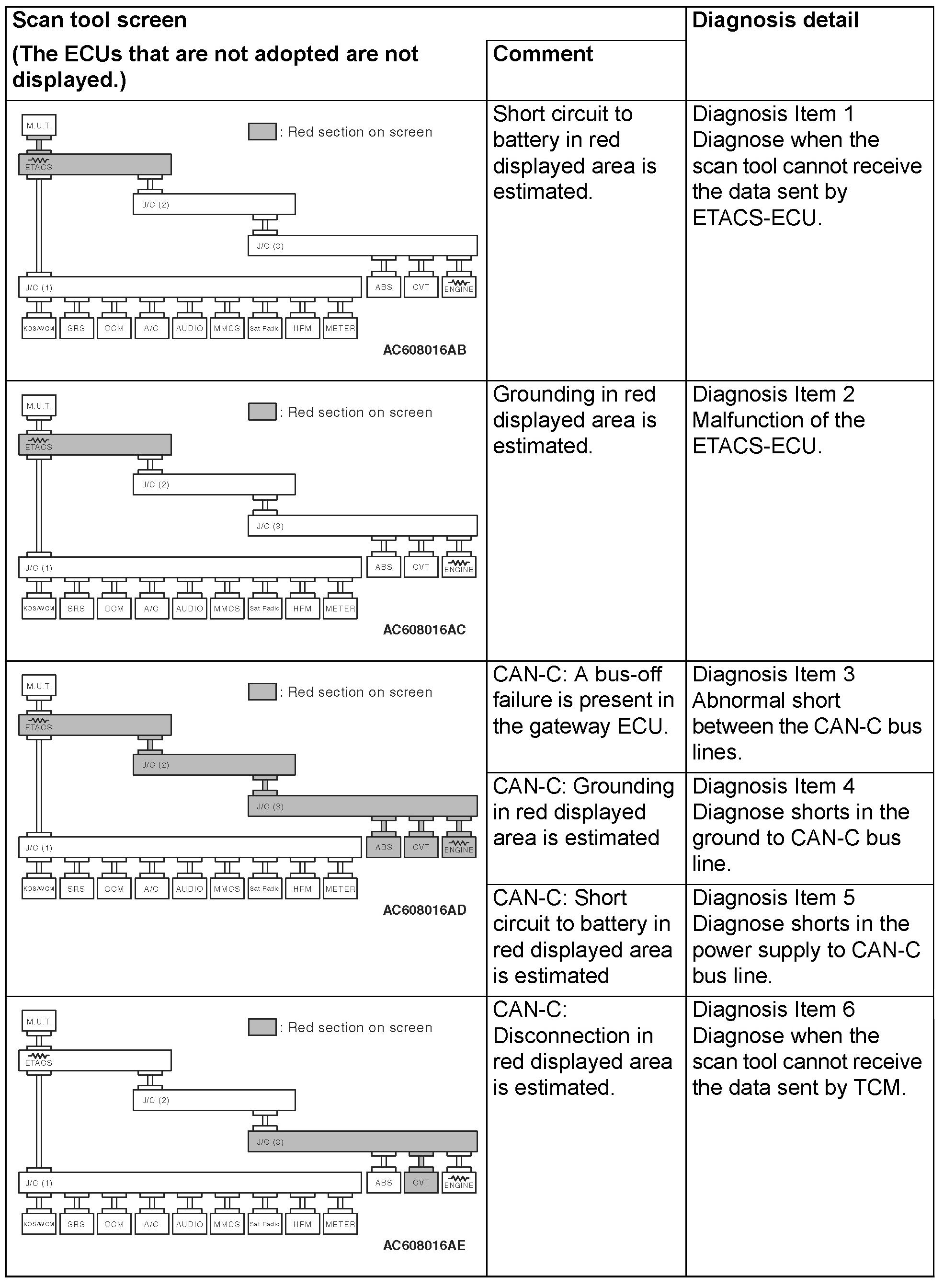 CAN Bus Diagnostics Table