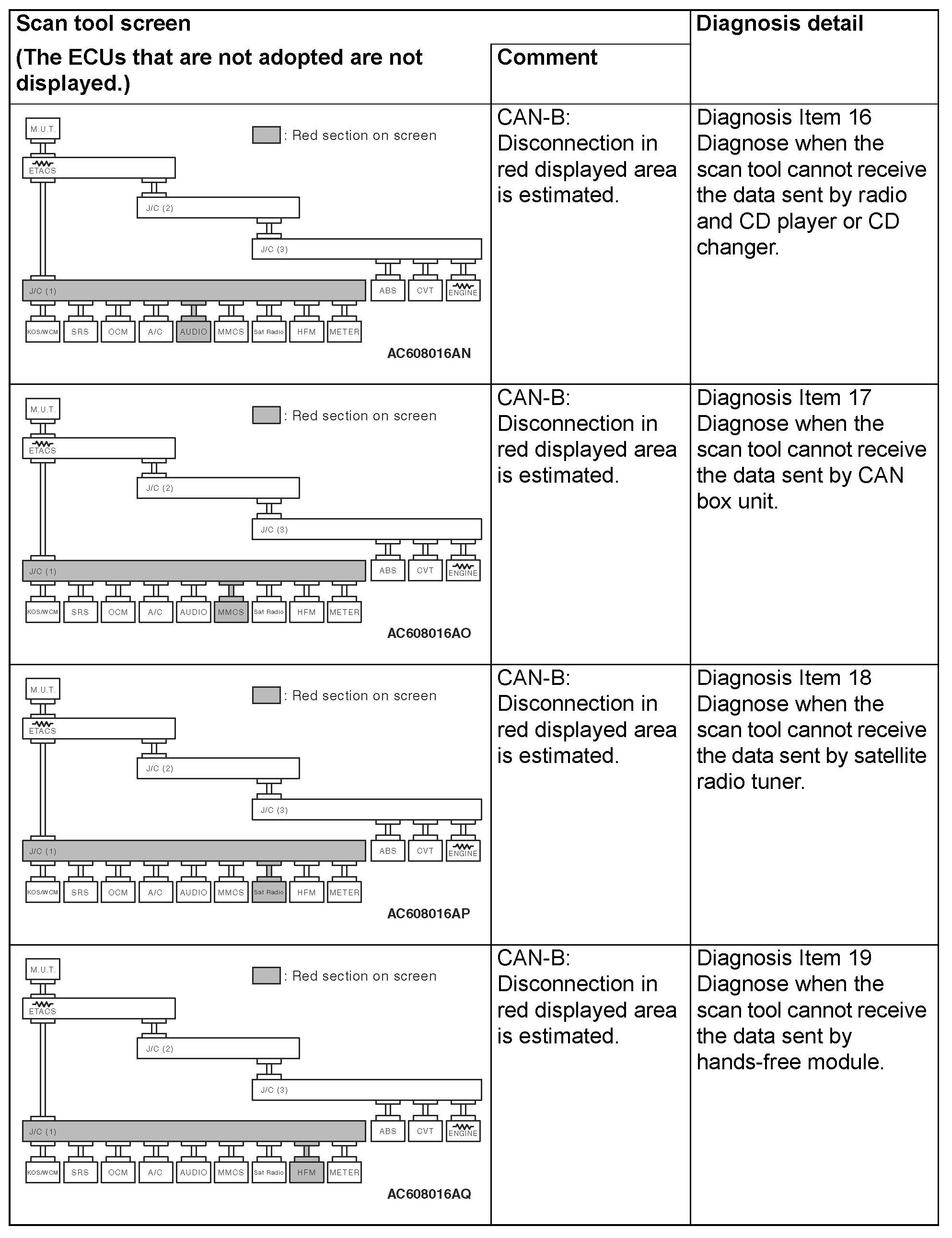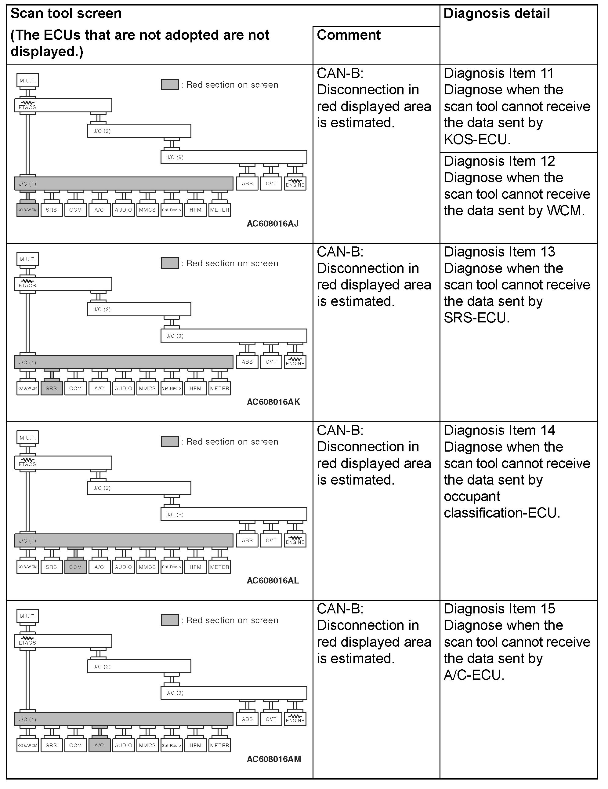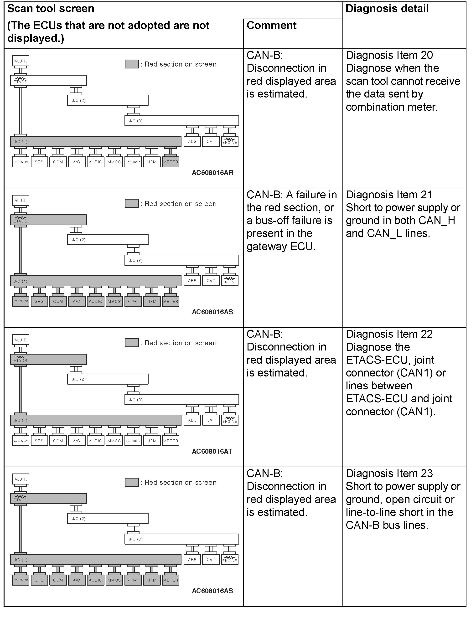 - A diagnosis code may not also be set in the CAN-B lines under the conditions below. If no diagnosis code has been set due to electrical noise, confirm diagnosis item 23 Diagnostic Item 23