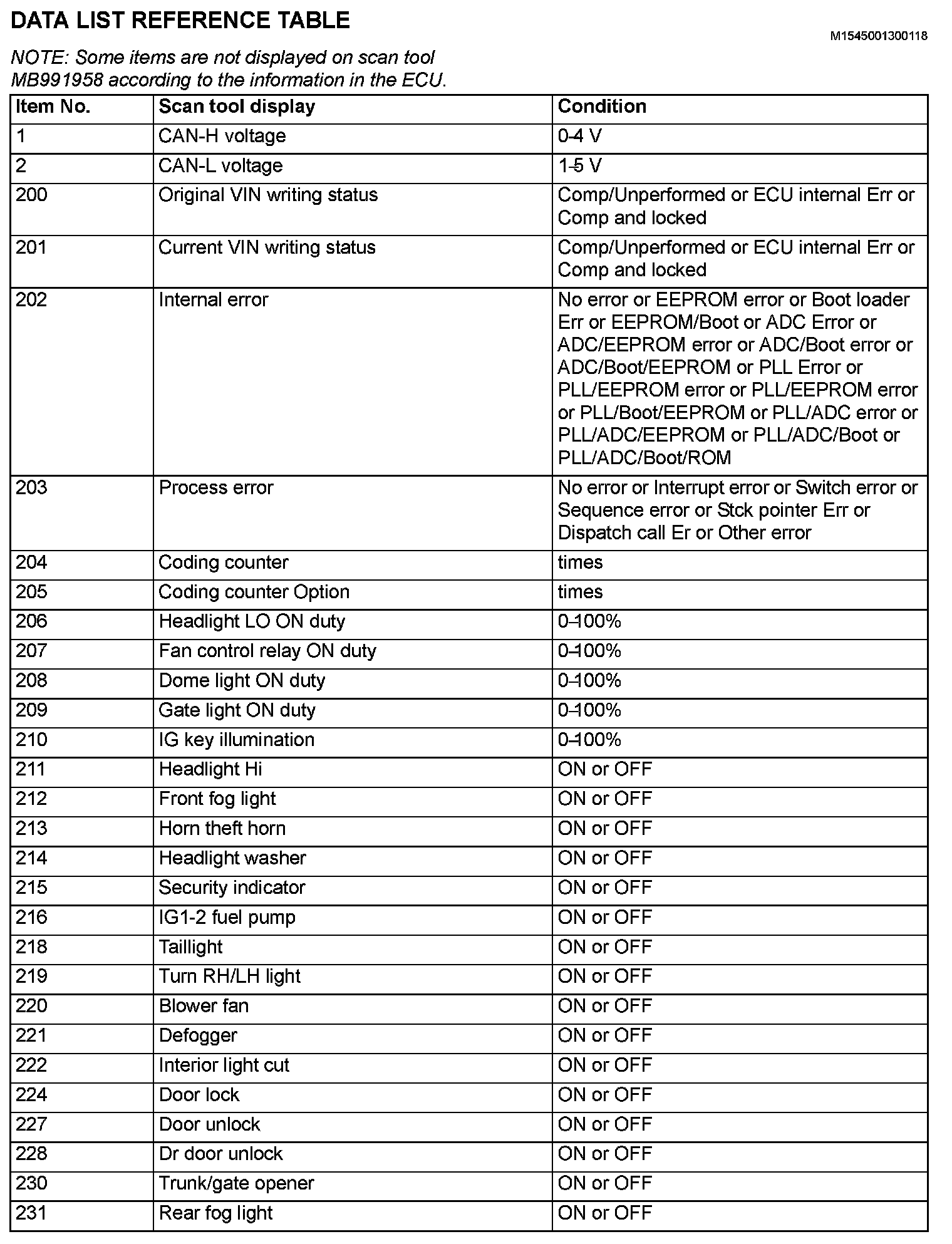 Data List Reference Table (Part 1):