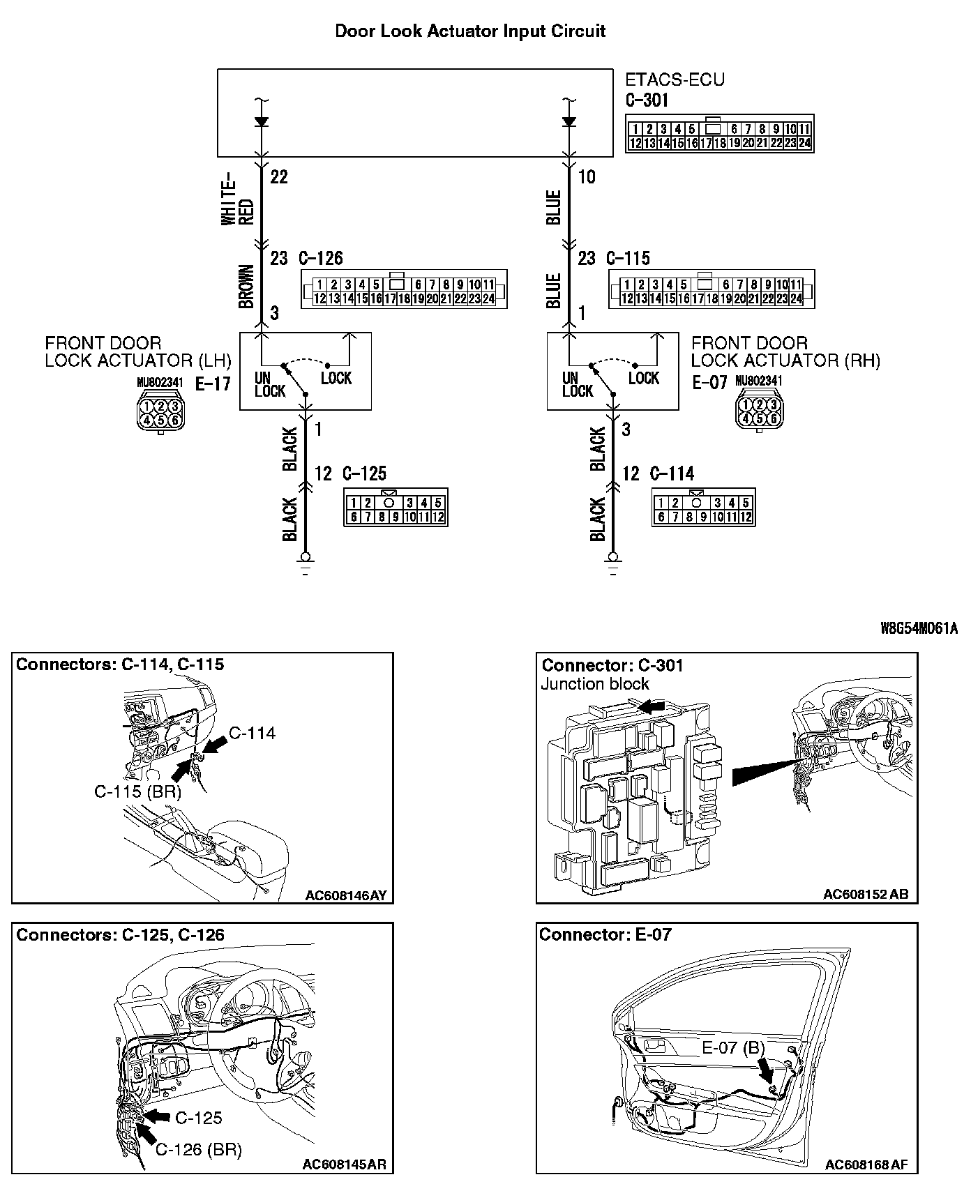 Inspection Procedure 4: ETACS-ECU Does Not Receive Any Signal From The Front Door Lock Actuator.Door Look Actuator Input Circuit (Part 1):