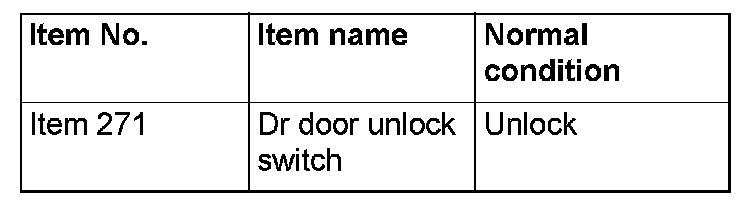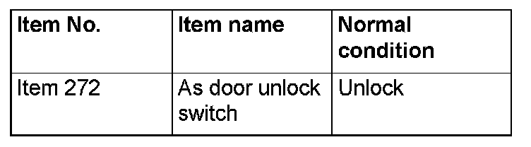 Q: Are normal conditions displayed on the "Dr door unlock switch" and "As door unlock switch"?