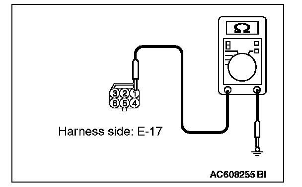STEP 4. Check the ground circuit to the front door lock actuator (LH). Measure the resistance at front door lock actuator (LH) connector E-17.