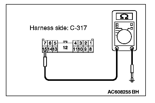 3. Measure the resistance value between ETACS-ECU connector C-317 terminal 15 and ground.