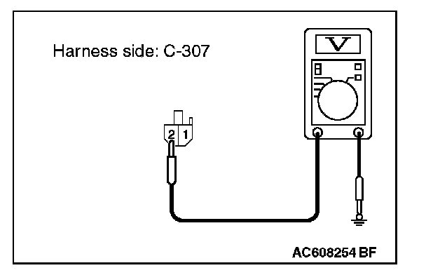 2. Measure the voltage between ETACS-ECU connector C-307 terminal 2 and ground.