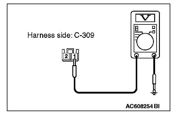 3. Measure the voltage between ETACS-ECU connector C-309 terminal 1 and ground.