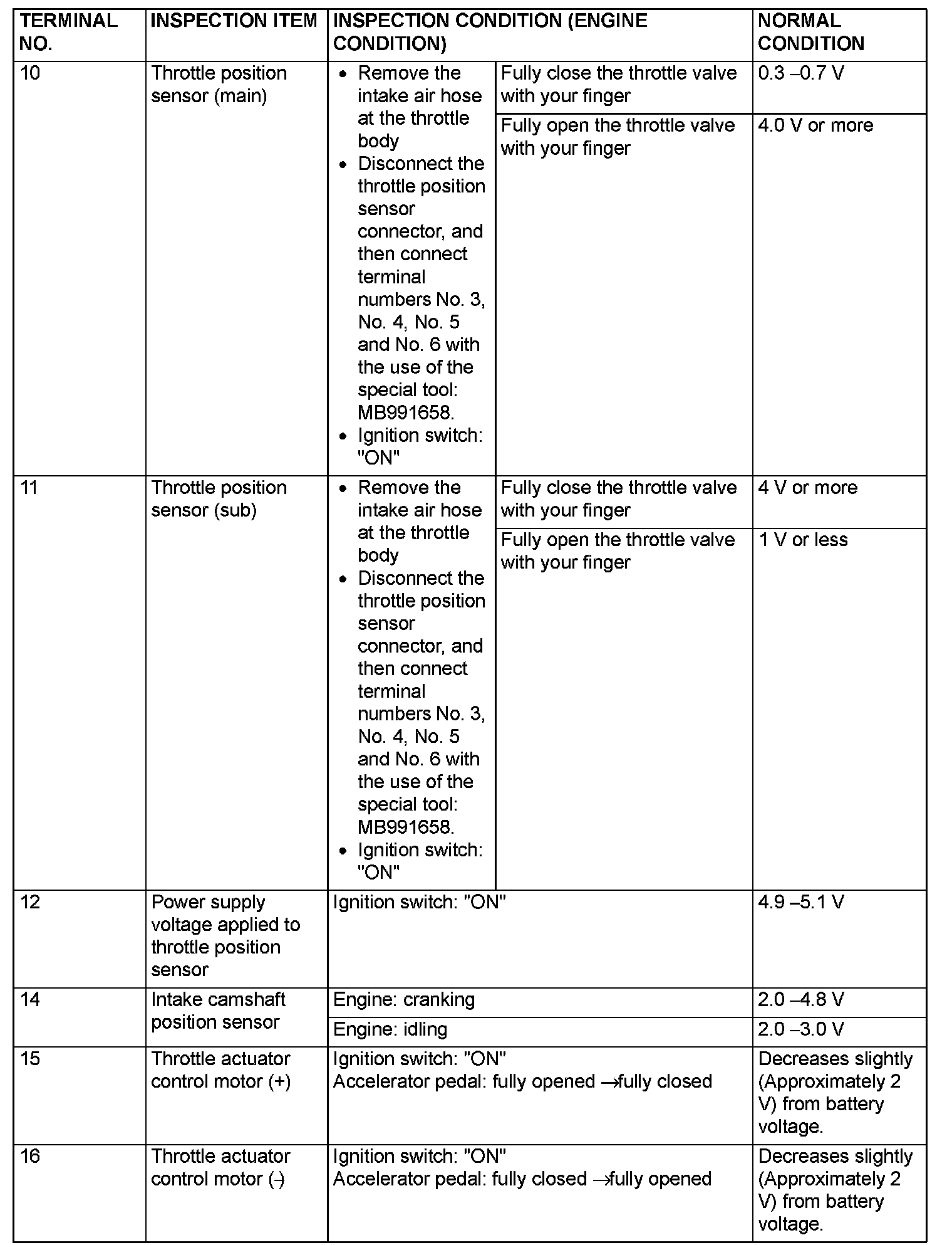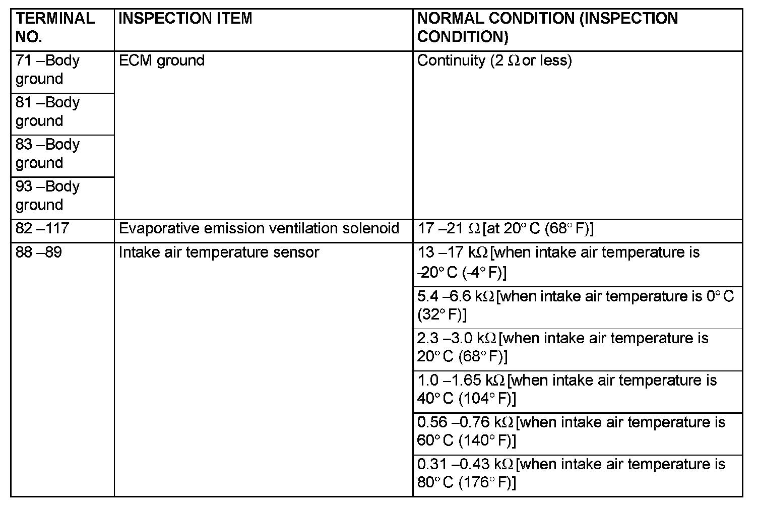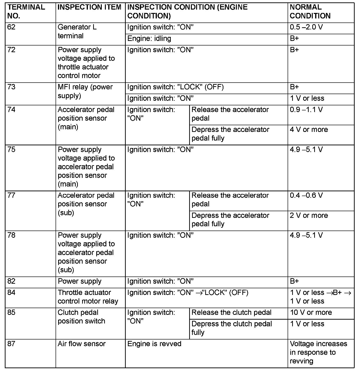 Terminal Voltage Check Chart (Part 2):