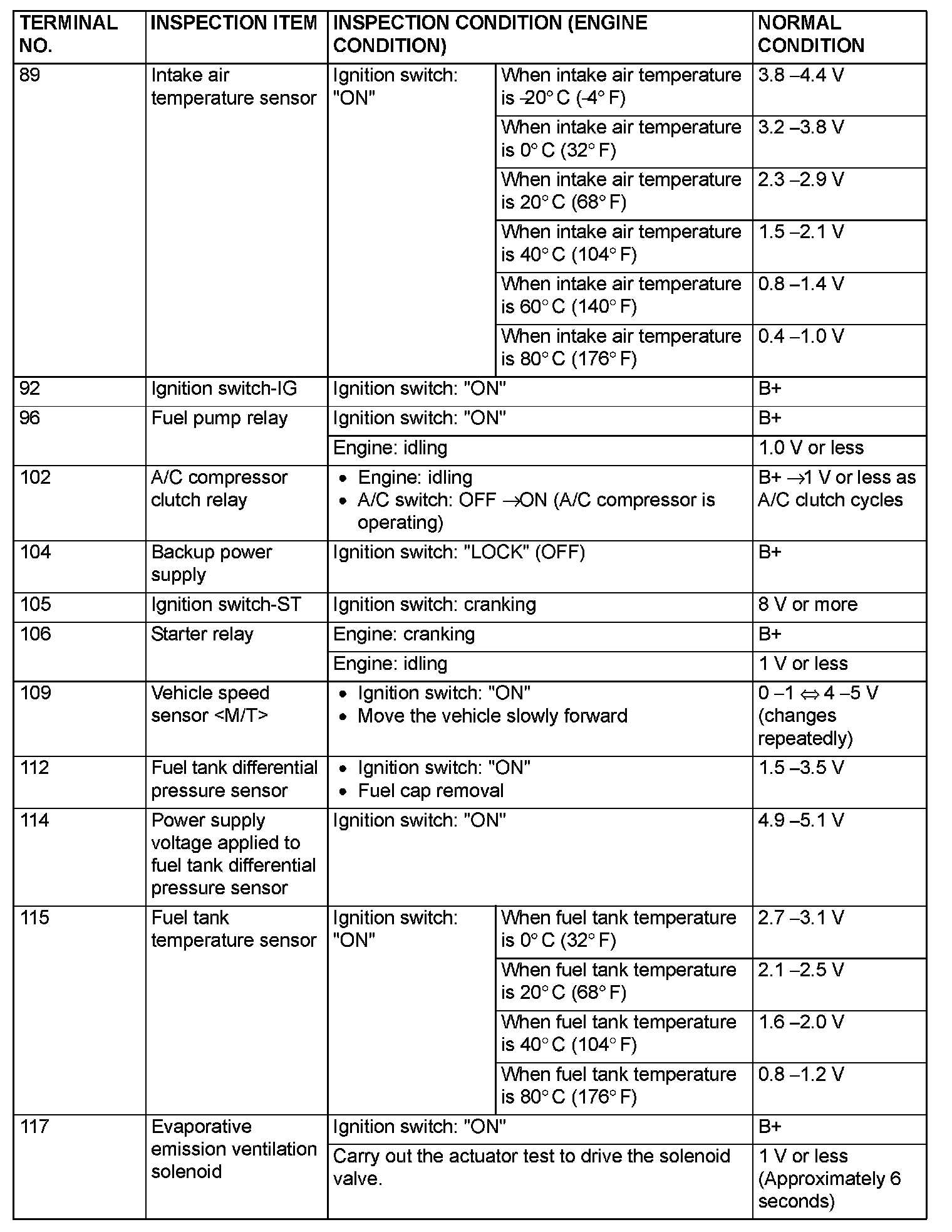 Terminal Voltage Check Chart (Part 5):
