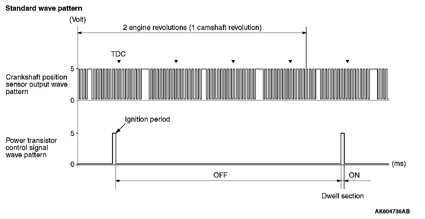 Point: The power transistor control signal (ignition timing) is advanced when the engine speed is increased.