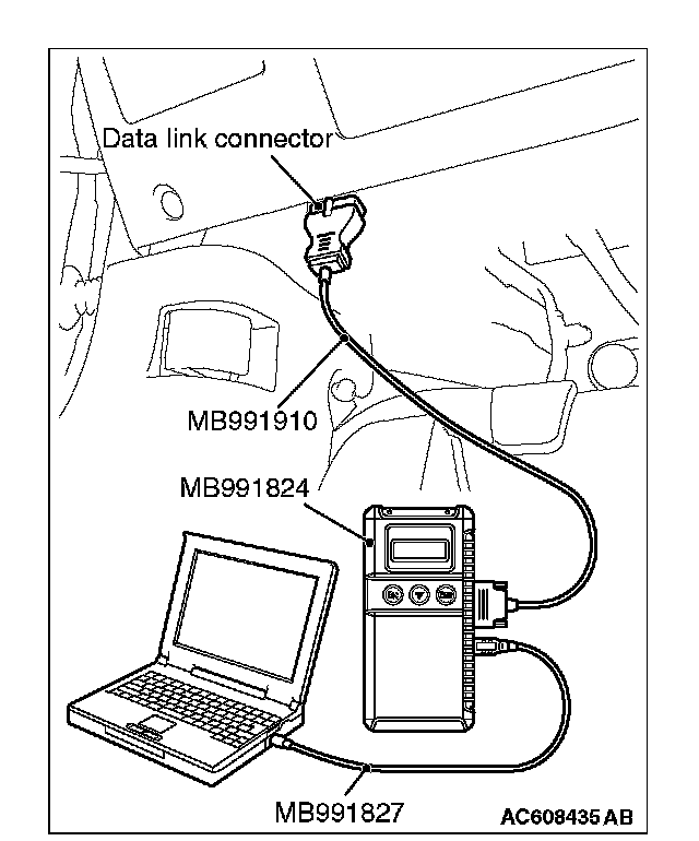 To prevent damage to scan tool MB9911958, always turn the ignition switch to the "LOCK" (OFF) position before connecting or disconnecting scan tool MB9911958.