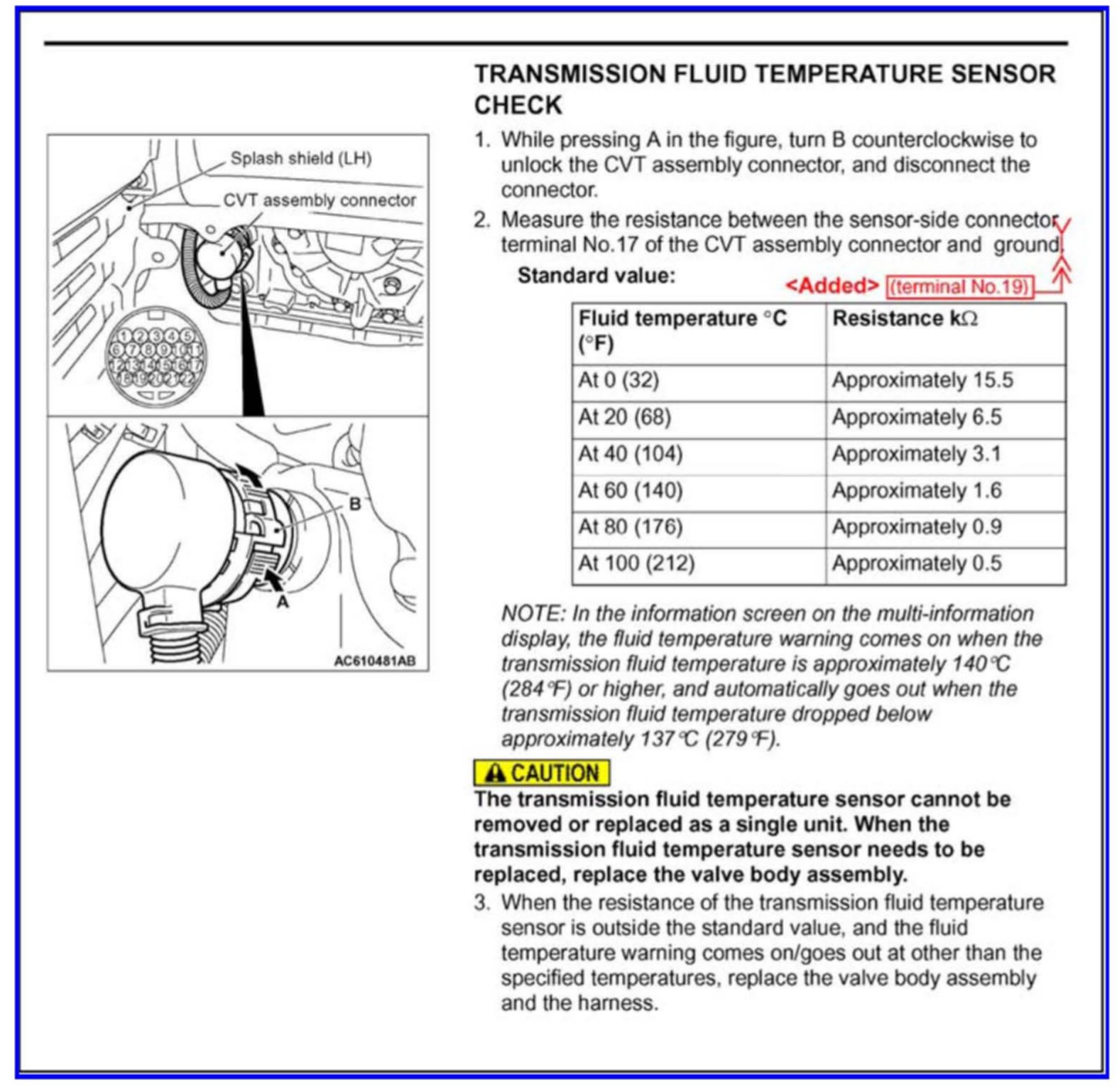 A/T - Fluid Temperature Sensor Check Addition